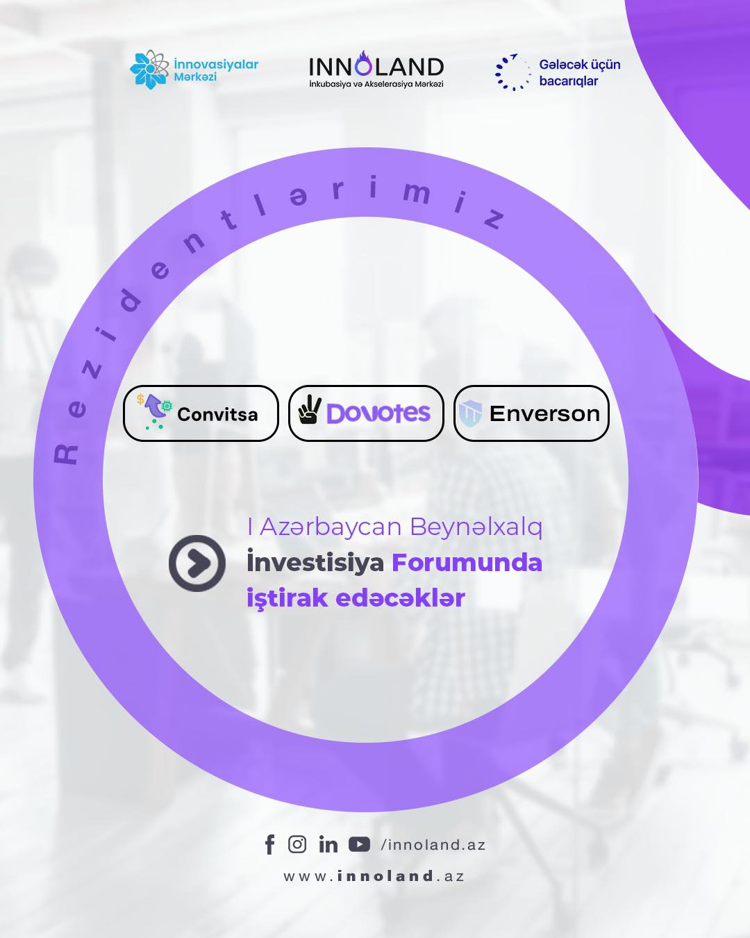 Наши резиденты — стартапы "Convitsa", “DoVotes” и "Enverson" — примут участие в I Азербайджанском Международном Инвестиционном Форуме.